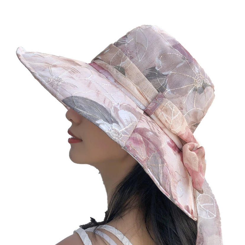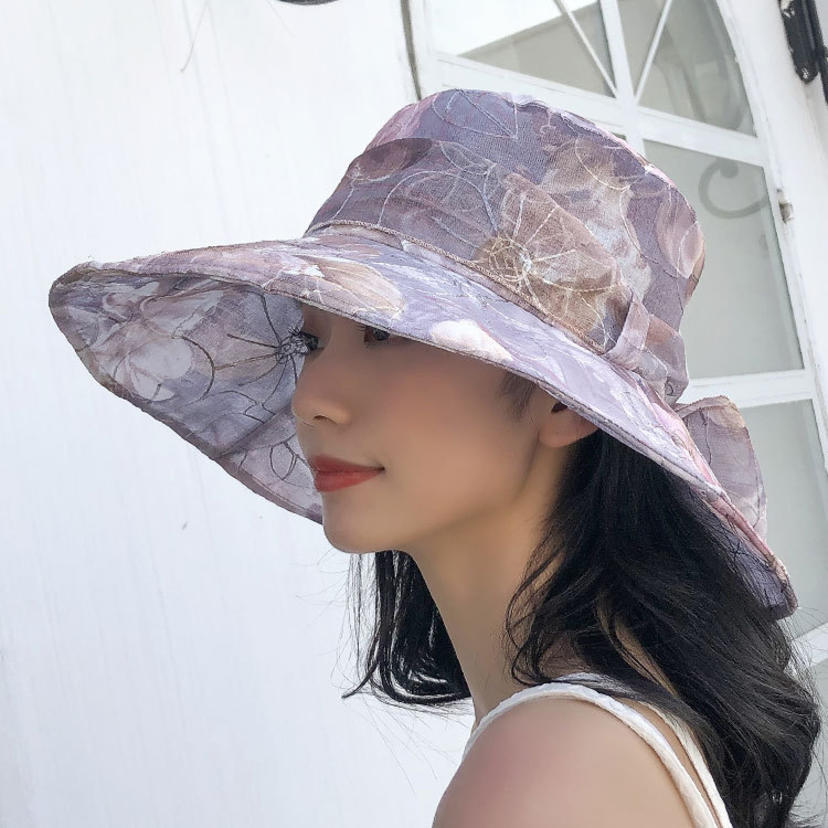 [5 colors optional] Korean version of the organza flower hat chiffon breathable embroidery beach hat sun hat holiday outdoor sun hat YWDF-3 (hat 26)