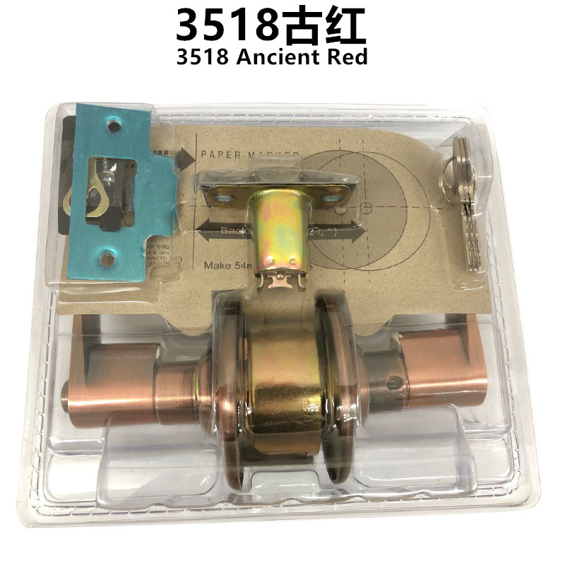 3518 ancient red steel wire drawing zinc alloy handle ball lock zinc alloy gold shape lock between guns Indoor door lock Bathroom lock room door lock Exterior door lock Ball lock