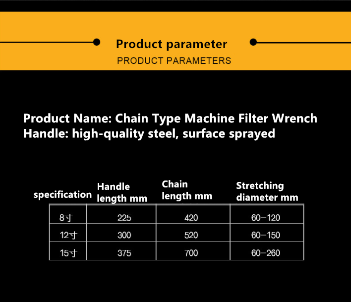 Place China Imported or not No Order number Casting chain filter Customized processing Yes Item No. Casting chain filter Type Chain type machine filter wrench Brand Jiutong Tools Model 451-56 Wrench Shape Single-head Wrench Characteristics Ordinary Material 45# Steel System Metric System Opposite side size fill in surface treatment spray plastic weight 350 (g)