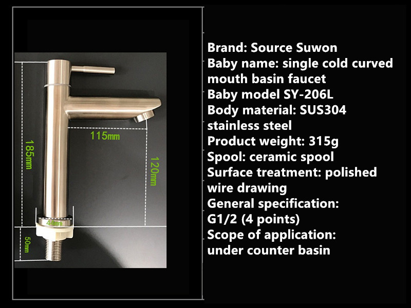 SUS304 stainless steel faucet single cold basin faucet ceramic basin faucet wash basin faucet curved mouth faucet SY-M003