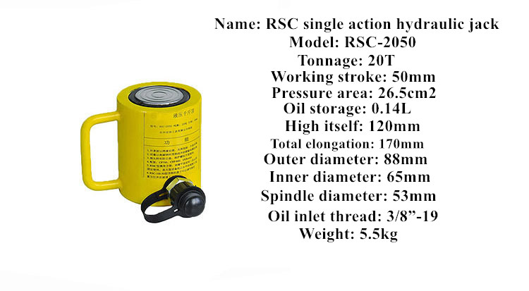 Type: Single acting hydraulic jack; Lifting weight: 20 (T); Minimum height: 120 (mm);
