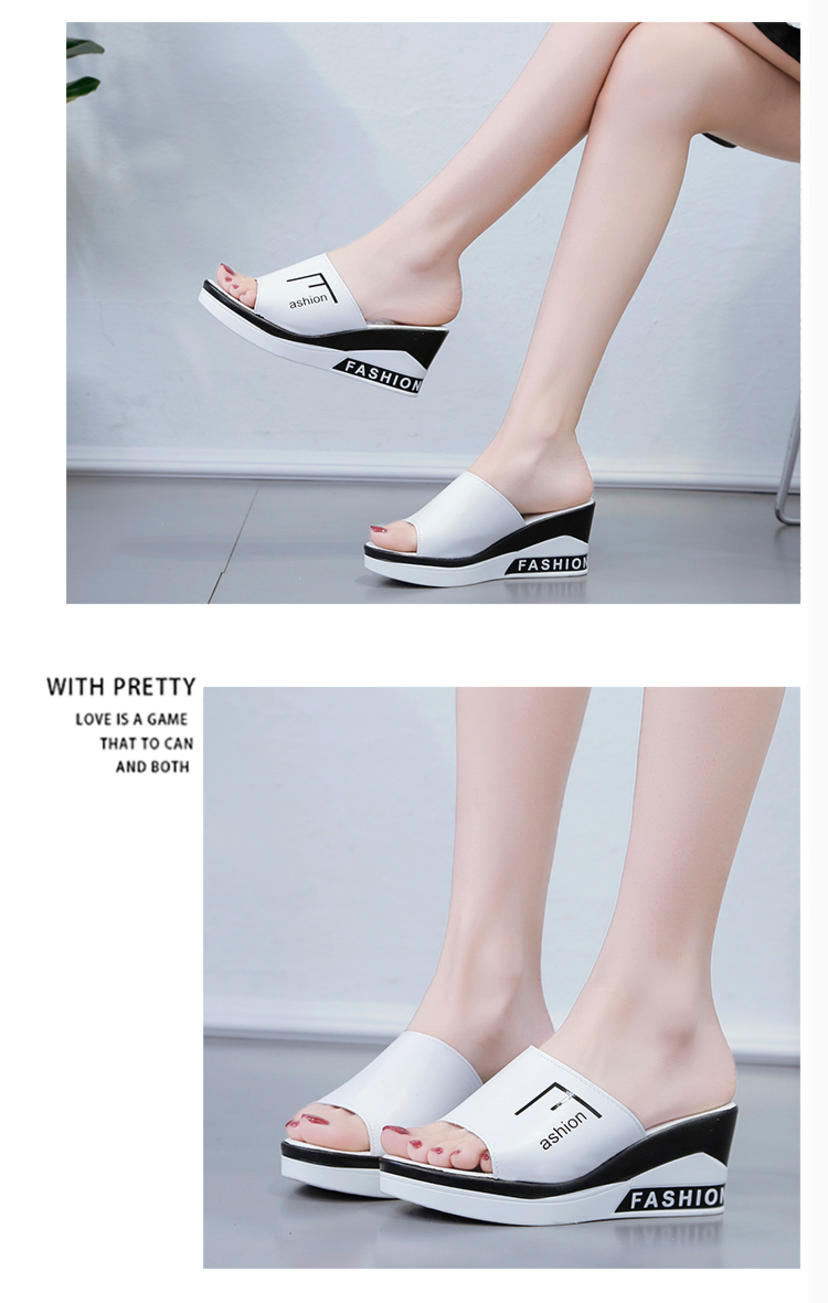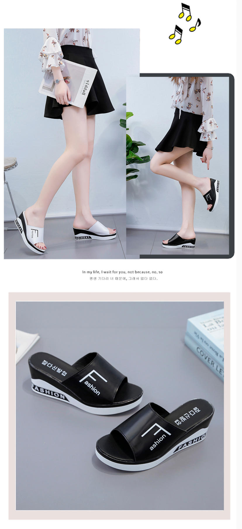 Summer Korean version of the new wedge with slippers thick bottom word drag fashion wild sandals (shoes 107)