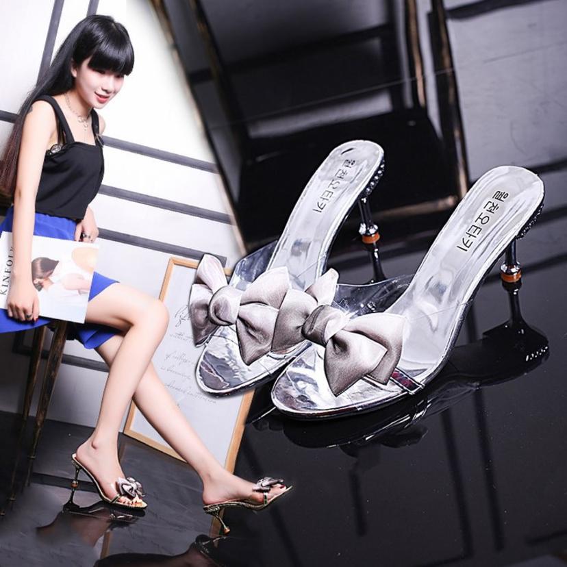 Half slipper female 2019 new fashion fine with sweet bow dew high heel sandals Korean women's shoes hh (shoes 116)