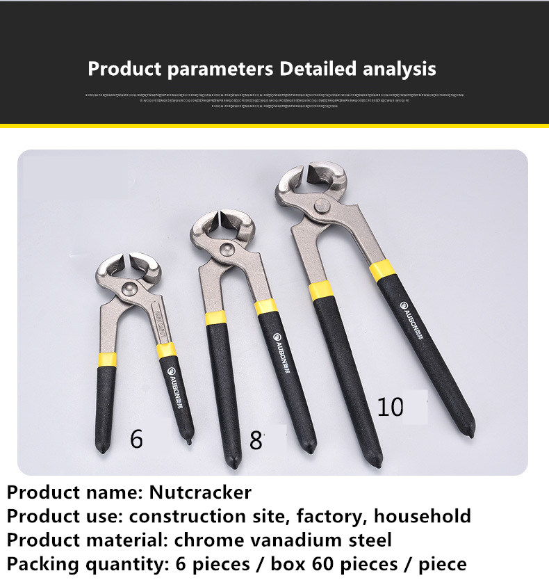 Brand Aubon Item No. 364510 Model Nutcracker 6 inch (6 pcs / box, 0.25kg / set), Nutcracker 8 inch (6 pcs / box, 0.39kg / set), Nutcracker 10 inch (6 pcs / box, 0.54kg / Handle), 8 inch cable tie (6 pcs / box, 0.27 kg / handle), 9 inch cable tie (6 pcs / box, 0.39 kg / handle), 10 inch cable tie (6 pcs / box, 0.45 kg / handle), wire tie pliers 12 inch (6 pieces / box, 60 pieces / piece), nutcracker 12 inch (6 pieces / box)
