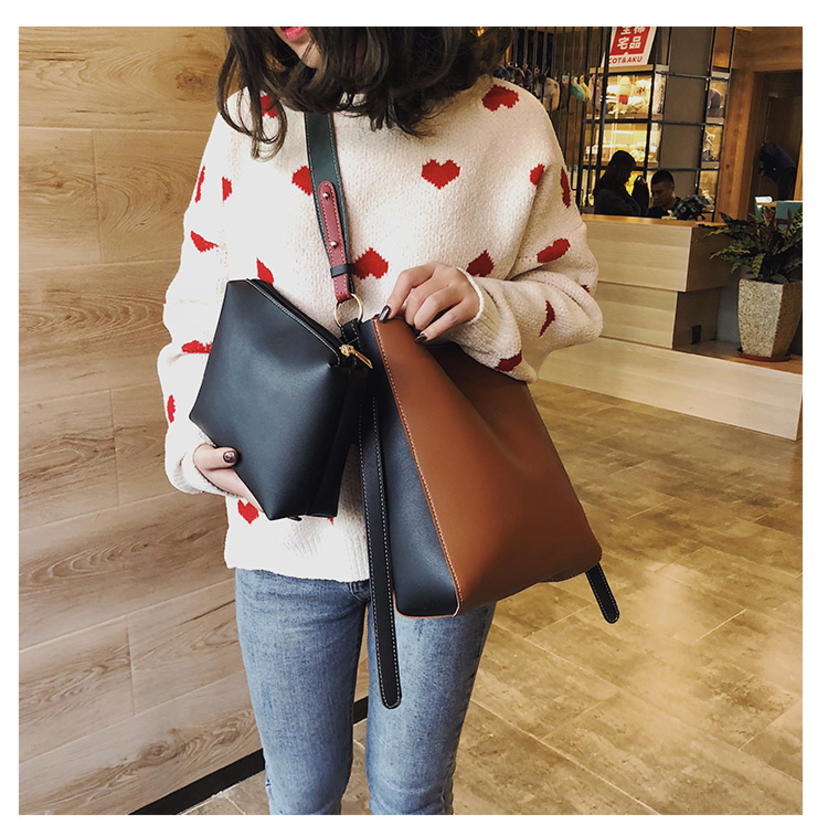 [Children's bag] 2019 new fashion contrast color slung large capacity autumn and winter shoulder simple ins super fire bucket bag (bag 60)